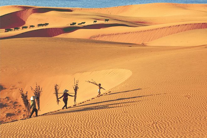 Ngoài ra, Mũi Né còn có những cồn cát đa sắc màu đẹp đến nao lòng. Chúng sẽ cho bạn cơ hội được trở về với tuổi thơ, những phút giây thư giãn cũng như cho bạn lưu lại những bức ảnh vô cùng nghệ thuật.